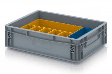 Tootekood: EG TEK 43 B7 Kasti sisu EURO laokastidele. Sisul on süvendid, kuhu vahekarbid klõpsavad paika kasutades klotsi põhimõtet. Sisestatavad vahekarbid on Euro laokastis kindlalt fikseeritud. Libisemiskindel paigutus ka täielikult täitmata sisul.