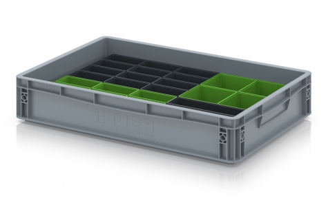 Tootekood: EG TEK 64 B3 Kasti sisu EURO laokastidele. Sisul on süvendid, kuhu vahekarbid klõpsavad paika kasutades klotsi põhimõtet. Sisestatavad vahekarbid on Euro laokastis kindlalt fikseeritud. Libisemiskindel paigutus ka täielikult täitmata sisul.