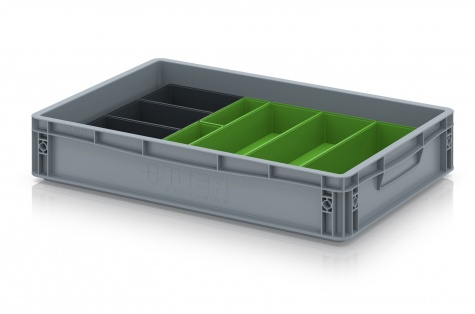 Tootekood: EG TEK 64 B4 Kasti sisu EURO laokastidele. Sisul on süvendid, kuhu vahekarbid klõpsavad paika kasutades klotsi põhimõtet. Sisestatavad vahekarbid on Euro laokastis kindlalt fikseeritud. Libisemiskindel paigutus ka täielikult täitmata sisul.