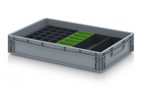 Tootekood: EG TEK 64 B7 Kasti sisu EURO laokastidele. Sisul on süvendid, kuhu vahekarbid klõpsavad paika kasutades klotsi põhimõtet. Sisestatavad vahekarbid on Euro laokastis kindlalt fikseeritud. Libisemiskindel paigutus ka täielikult täitmata sisul.