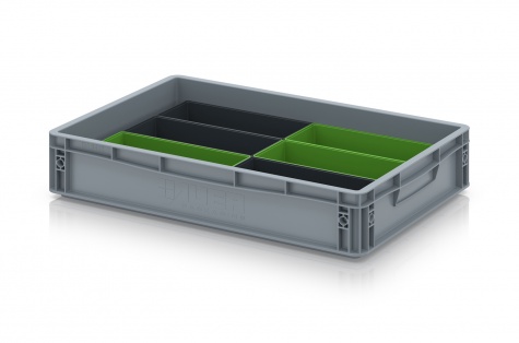 Tootekood: EG TEK 64 B8 Kasti sisu EURO laokastidele. Sisul on süvendid, kuhu vahekarbid klõpsavad paika kasutades klotsi põhimõtet. Sisestatavad vahekarbid on Euro laokastis kindlalt fikseeritud. Libisemiskindel paigutus ka täielikult täitmata sisul.