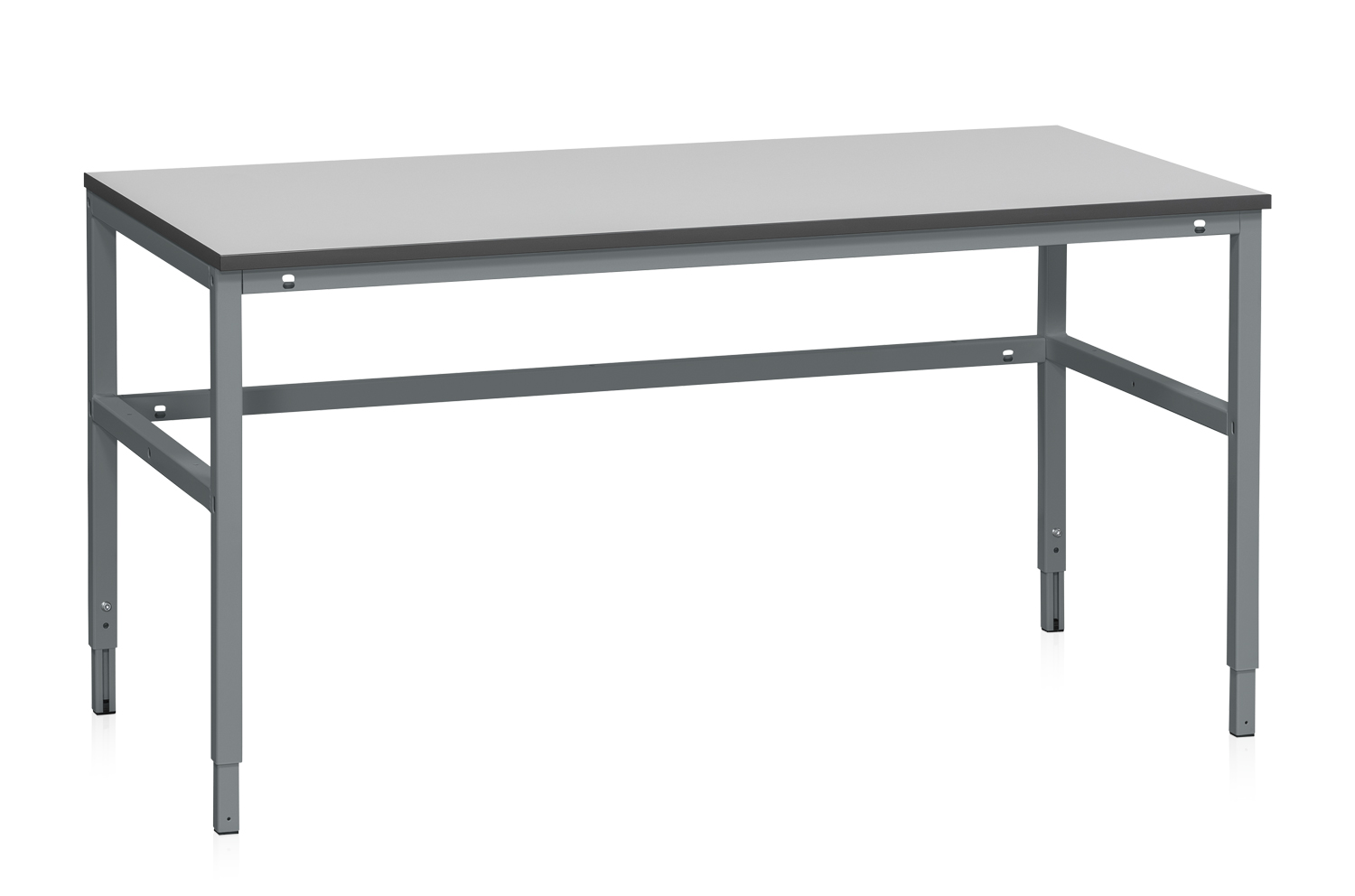 Tootekood: 1-807-136 Töölaud käsitsi reguleeritavate terasjalgadega, tööpind hallist lamineeritud plaadist, alumine riiul ja kaks C-profiili laiendamiseks. Töölauda saab käsitsi reguleerida.
