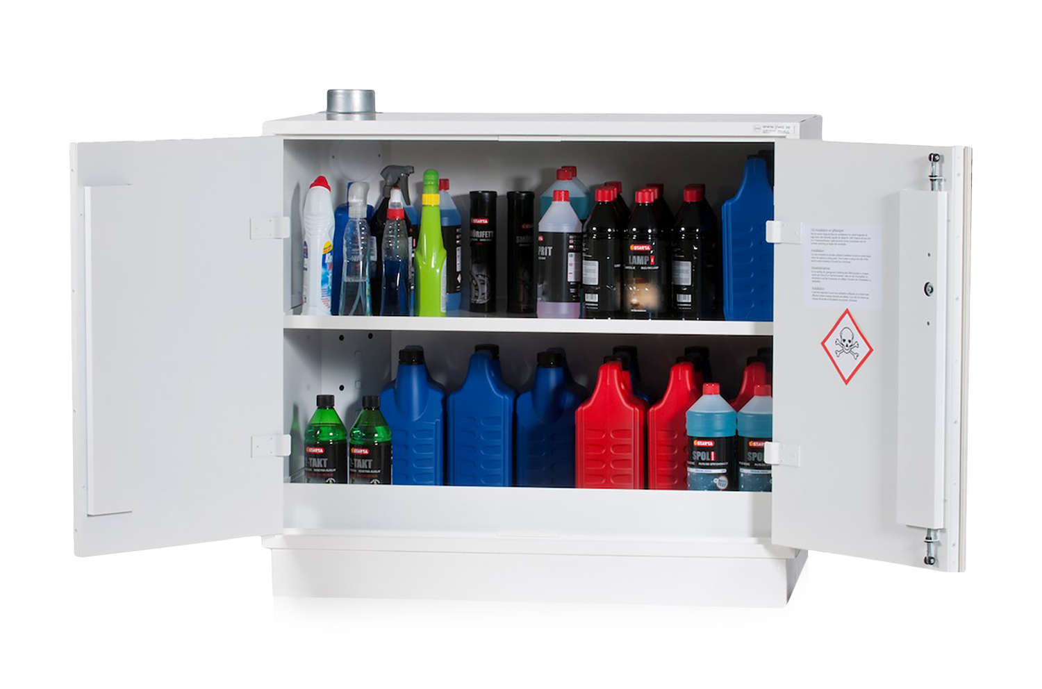 Tootekood: 4-655-4 Tulekindel kemikaalikapp tuleohtlike ja mürgiste kemikaalide hoiustamiseks. Varustatud viie reguleeritava riiuliga. Riiulitel on üles keeratud servad ja suletud nurgad, et vältida lekke korral vedeliku väljavoolu. Kappi saab varustada ka põhjakogumisalusega suuremate kanistrite hoiustamiseks. Kapp on varustatud ventilatsioonitoruga, mis aitab ventileerida riiulite vahelisi pindu. Õhuväljalaskeava asub kapi laes (Ø 100 mm).