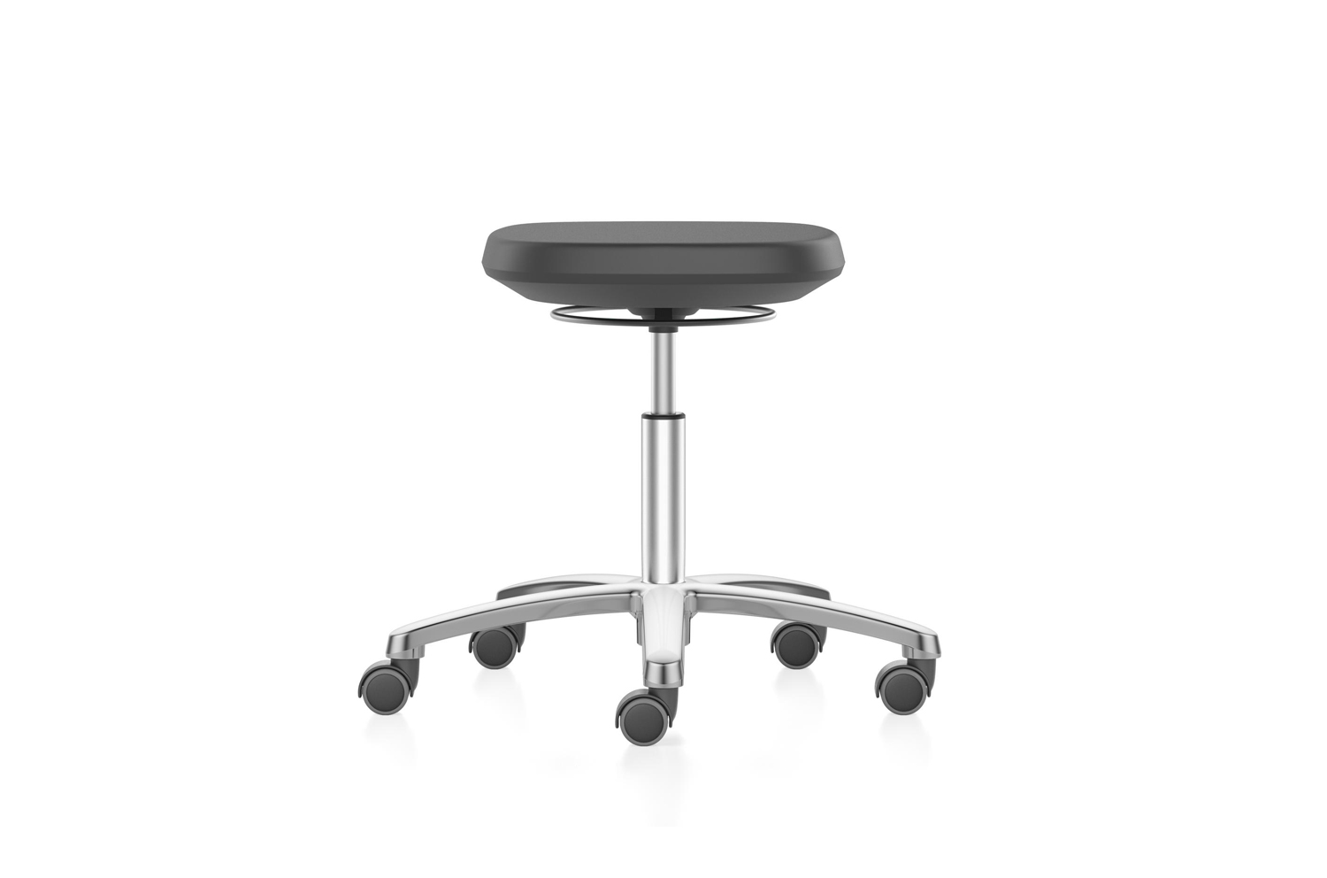 Taburetil on koormusest sõltuva pidurdusega pehmed topeltrattad kõvadele põrandatele ning alumiiniumist jalarist.