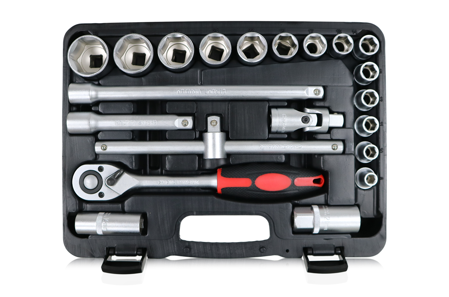 Tootekood: H03-002-006-02 Täielik 21-osaline padrunvõtmete komplekt, 1/2, valmistatud kroom-vanadiumterasest.