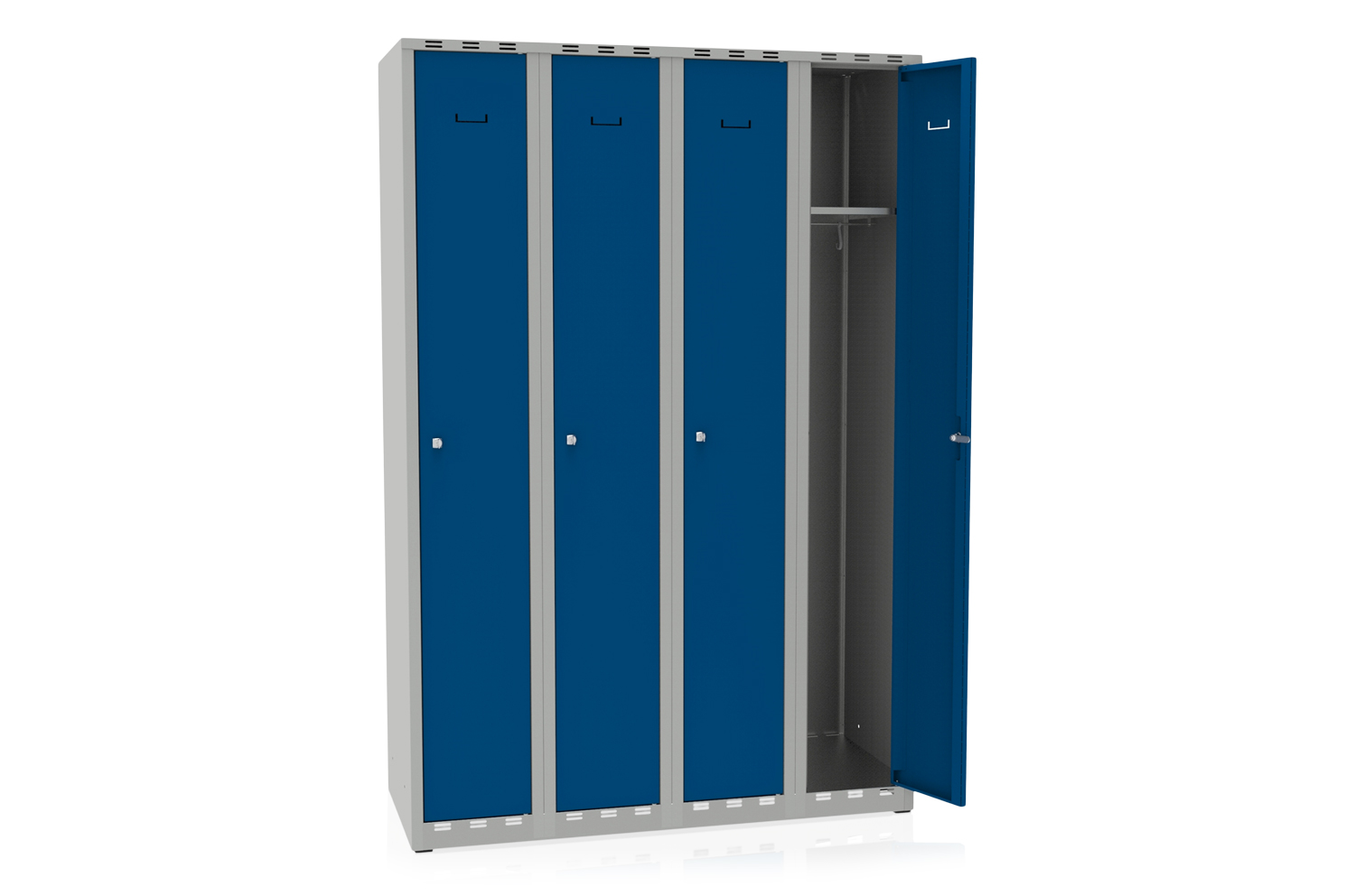 Tootekood: 616104-131 Täiskeevitatud ja pulbervärvitud garderoobikapp, valmistatud lehtterasest. Värvkate annab vastupidava pinna, mistõttu sobib kapp eriti hästi avalikesse keskkondadesse, nagu spordisaalid, ujulad, kontorid ja panipaigad.