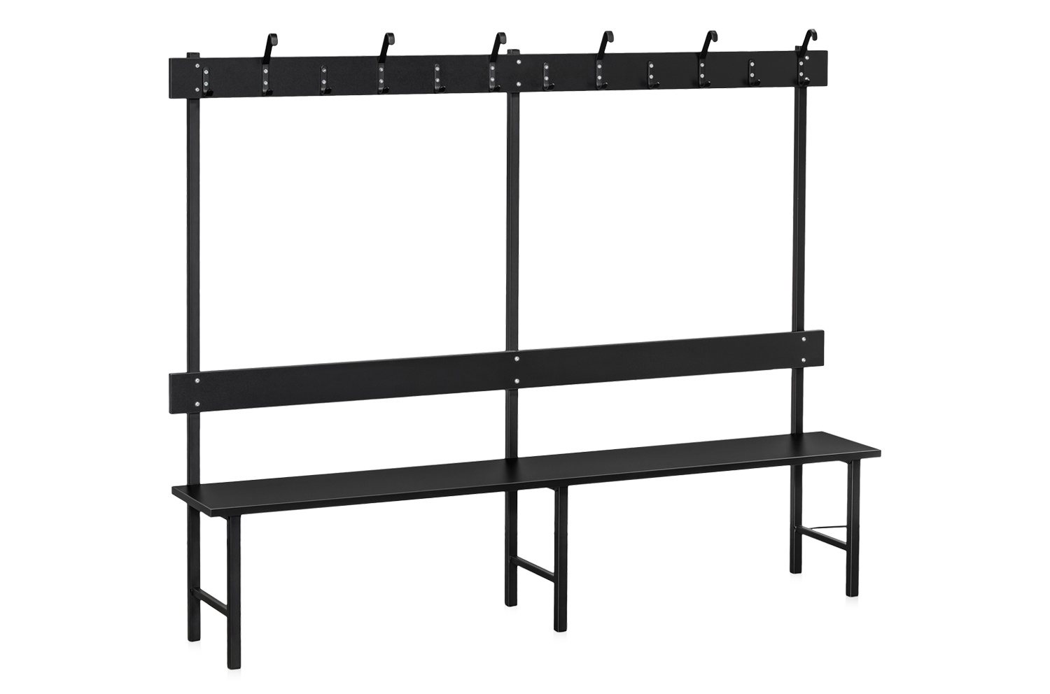 Tootekood: 2-652-77 Tugev ja iseseisev pink, ideaalne garderoobidesse või riietusruumidesse. Sisaldab riputusliistu. Pink on varustatud istmeosa, seljatoe ja nagiliistuga, mis on valmistatud melamiinist, ning pulbervärvitud musta raamiga. Istumiskõrgus on 430 mm, istmesügavus 365 mm ja kogukõrgus 1600 mm.