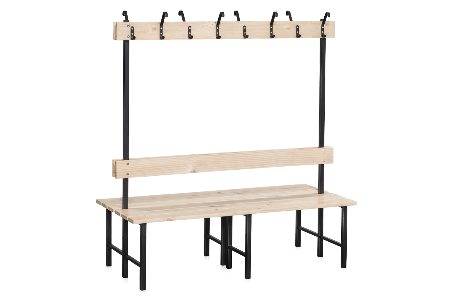 Tootekood: 2-656-7 Tugev ja iseseisev pink, ideaalne garderoobidesse või riietusruumidesse. Sisaldab riputusliistu. Pink on varustatud istmeosa, seljatoe ja nagiliistuga, mis on valmistatud läbipaistva lakiga kaetud männipuidust, ning pulbervärvitud musta raamiga. Istumiskõrgus on 430 mm, istmesügavus 365 mm ja kogukõrgus 1600 mm.