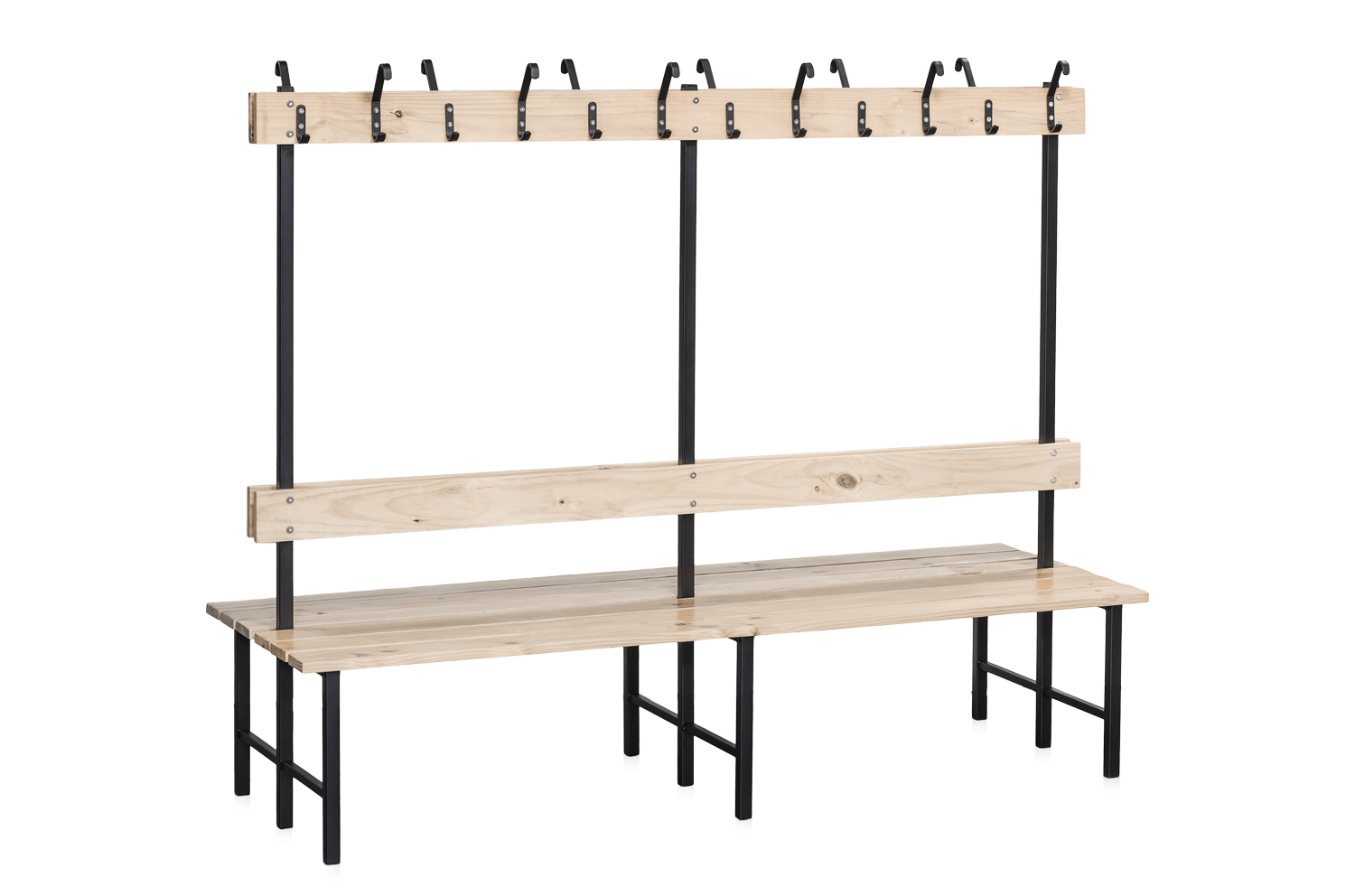Tootekood: 2-657-7 Tugev ja iseseisev pink, ideaalne garderoobidesse või riietusruumidesse. Sisaldab riputusliistu. Pink on varustatud istmeosa, seljatoe ja nagiliistuga, mis on valmistatud läbipaistva lakiga kaetud männipuidust, ning pulbervärvitud musta raamiga. Istumiskõrgus on 430 mm, istmesügavus 365 mm ja kogukõrgus 1600 mm.