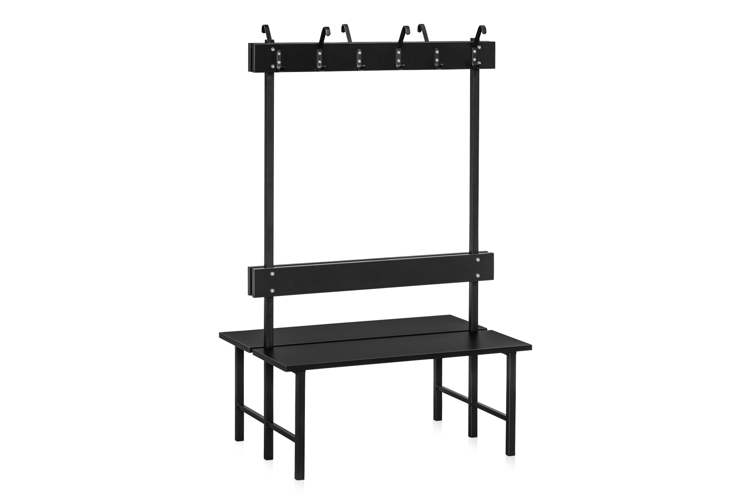 Tootekood: 2-655-77 Tugev ja iseseisev pink, ideaalne garderoobidesse või riietusruumidesse. Sisaldab riputusliistu. Pink on varustatud istmeosa, seljatoe ja nagiliistuga, mis on valmistatud melamiinist, ning pulbervärvitud musta raamiga. Istumiskõrgus on 430 mm, istmesügavus 365 mm ja kogukõrgus 1600 mm.