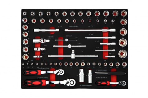 * ½ seeria: padrunid 8–32 mm, räikkavõti, pikendused (125 & 250 mm), T-käepide ja universaalliigend.