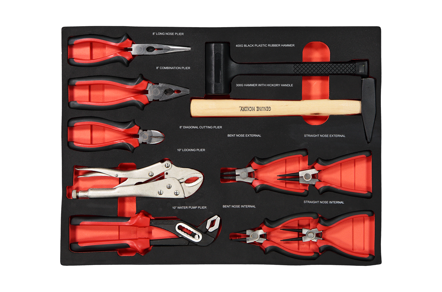 * Tangid: pikad ninaotsatangid 200 mm, kombitangid 200 mm, lõiketangid 150 mm, keevitustangid 250 mm, libliktangid 250 mm, seegeritangid (sisemised ja välimised, sirged ja nurga all, kõik 150 mm).
