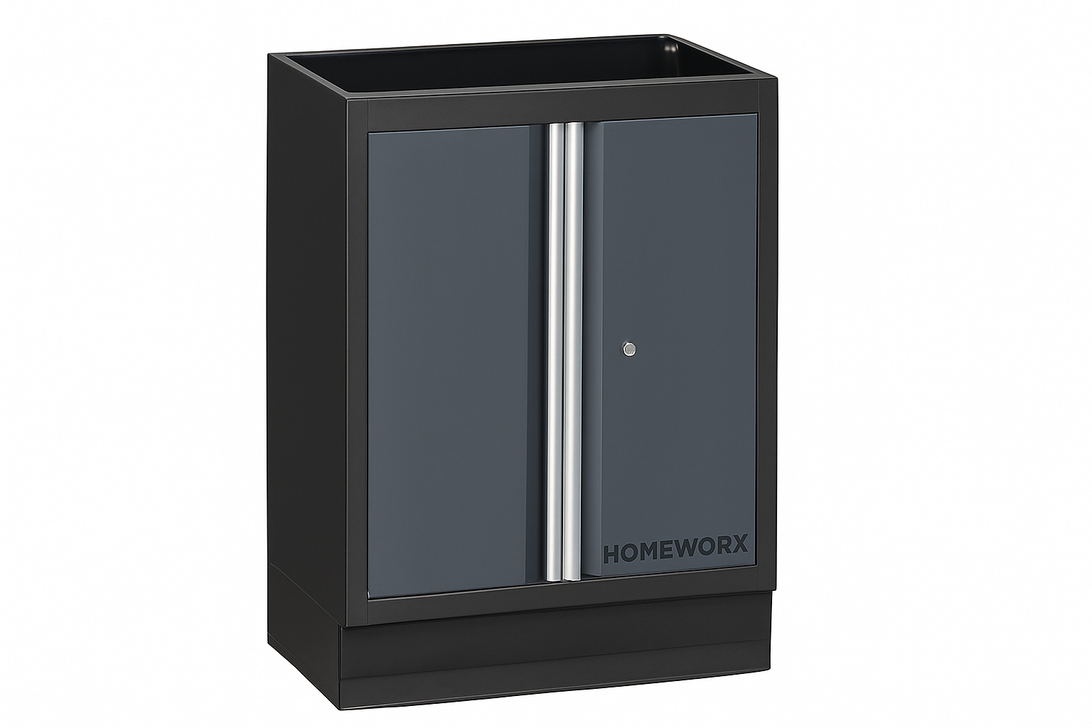 Tootekood: H-20-0007-3 Hall/must aluskapp, millel on kaks ust – ideaalne koos sahtlibloki ja tööpinnaga, et luua töökojakomplekt. Uksed on lukustatavad ning kapis on reguleeritav riiul.