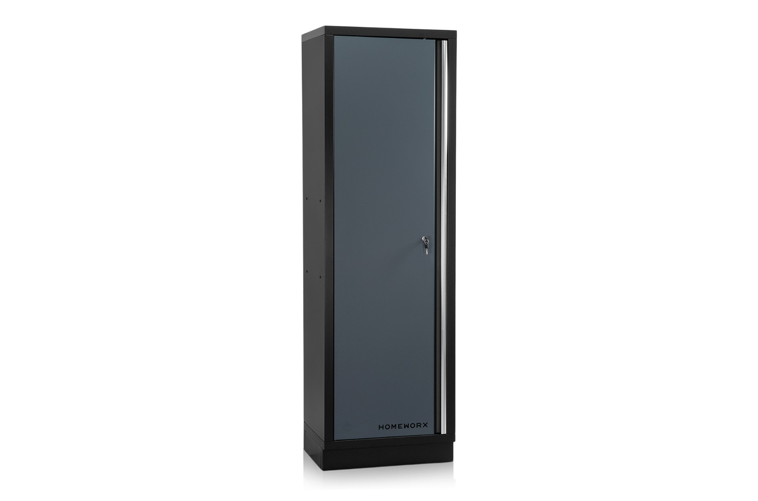 Tootekood: H-20-0013-3 Stiilne kõrge kapp nutikaks hoiustamiseks töökojas.. Vastupidavat konstruktsiooni on lihtne kokku panna ning see sisaldab nelja reguleeritavat riiulit, mida saab paigaldada soovitud kõrgusele. Uks on lukustatav ja komplektis on võtmed.