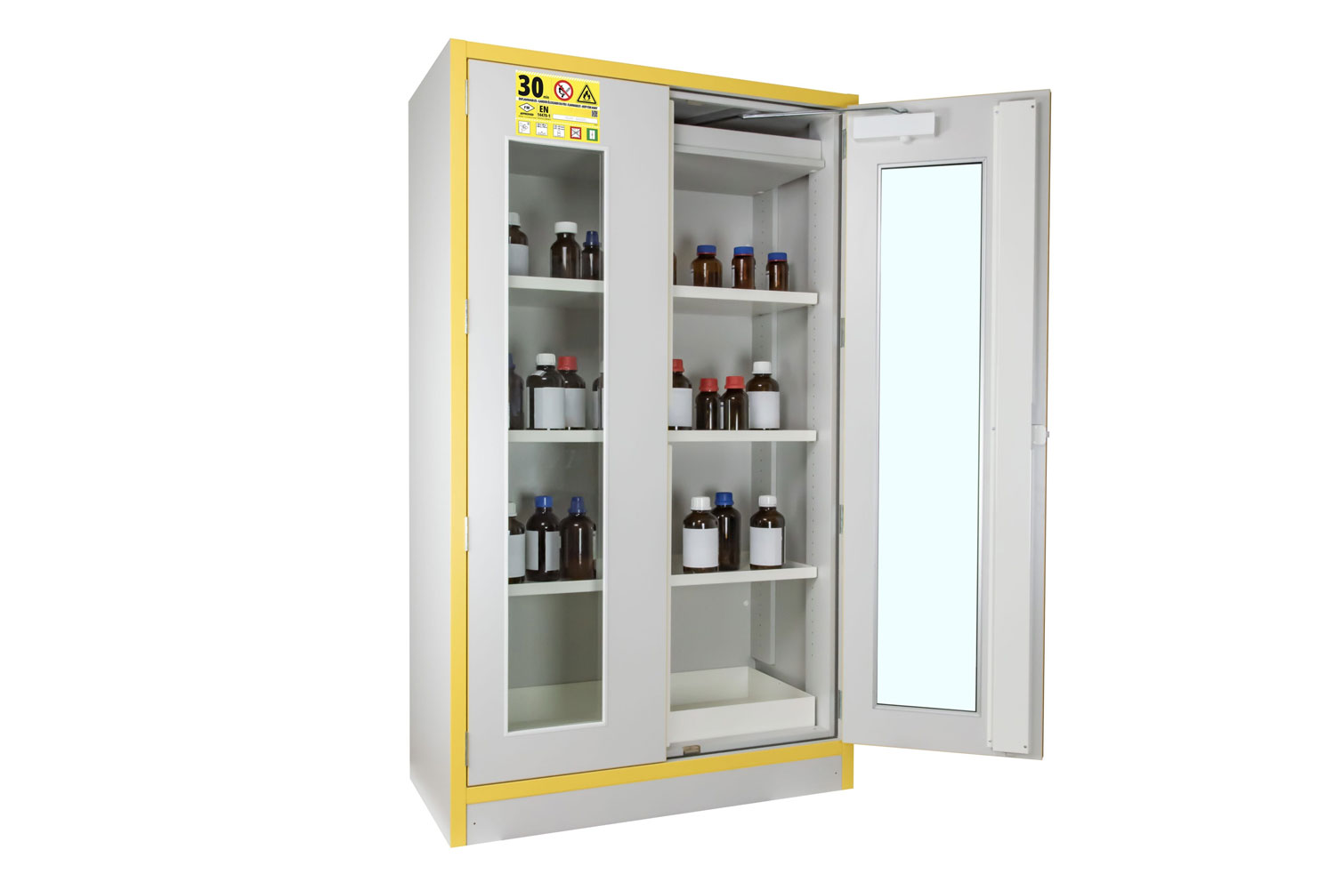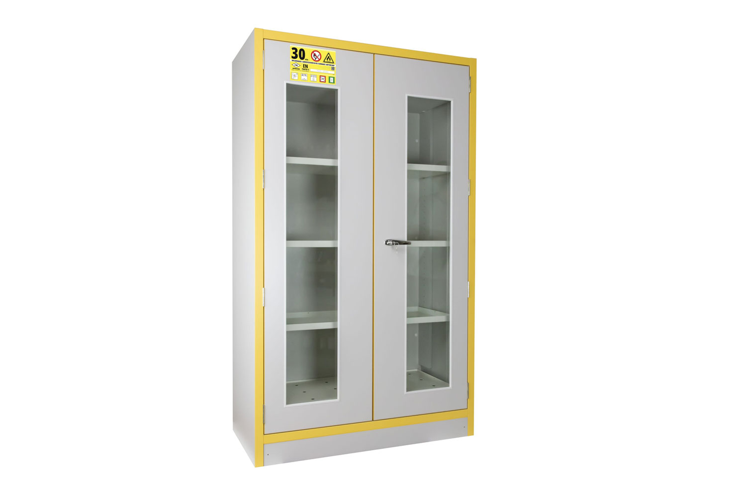 Kemikaalikapp põhjakogumisalusega ja kolme reguleeritava riiuliga. Kapp on testitud tulekindluse osas vastavalt standardile EN 14470-1 ning peab vastu 30 minutit. Varustatud isesulguvate ustega, mis sulguvad automaatselt ruumi temperatuuri tõustes 50 °C-ni. Uksed lukustuvad eraldi. Ühendusotsik (Ø100 mm) ventilatsiooni jaoks.